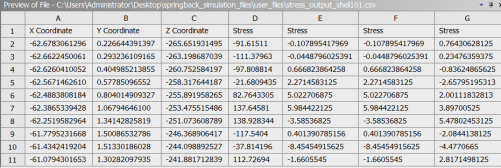 (2)、导出厚度分布、应力分布信息,保存为csv格式