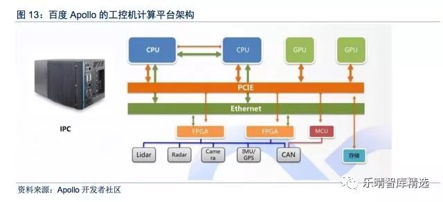 百度无人驾驶样车采用IPC(IndustrialPersonalComputer,工控机)方案,但工控机的体积和功耗难以满足量产化要求,因而百度也推出了适合于量产的域控制器嵌入式方案。