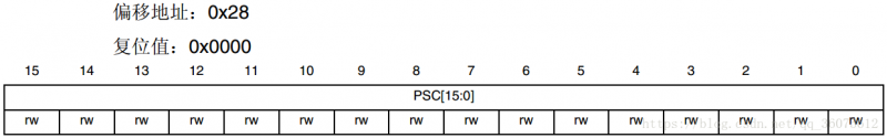 位 15:0 PSC[15:0]:预分频器值 (Prescaler value)