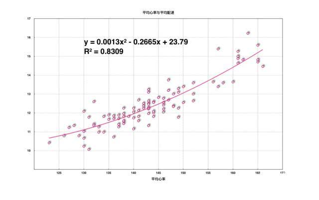 在北方的冬季,我基本上是靠跑步机训练来维持体重和能力。为了能更好的进行跑步机训练,我特意对我过去3年有心率的跑步数据进行了筛选,选择了超过100个有效样本数据,生成了我的心率和配速的拟合曲线,通过验证,这条曲线有较好的拟合性。