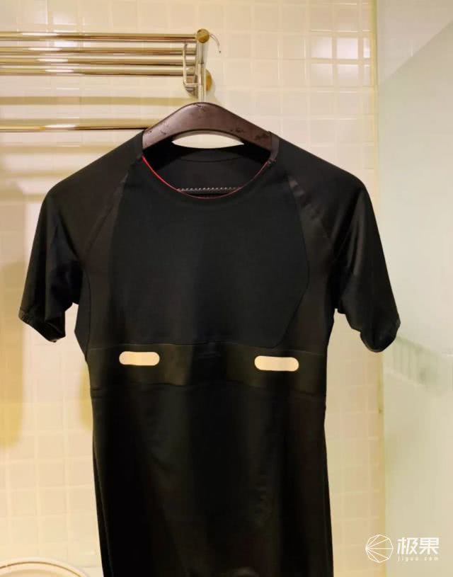 本次评测的T恤尺码为S码。T恤+心率模块的重量为160克。