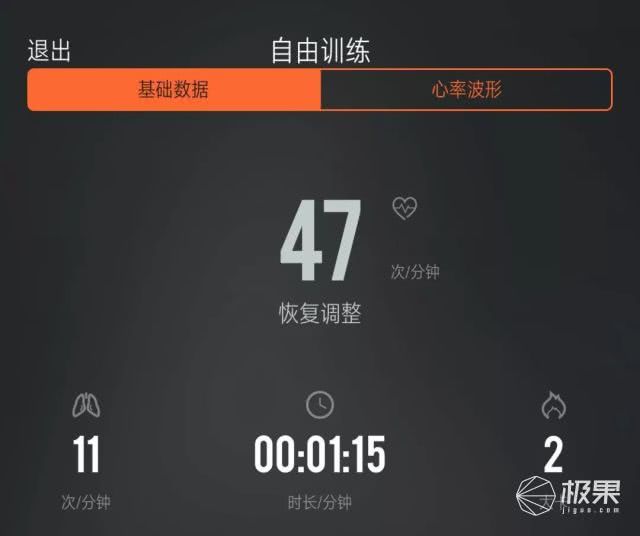 在进入普通模式后,可以通过手机屏幕直观的看到心率、呼吸、消耗和时间。
