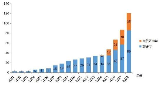 业务种类 | 部许可 | 自贸区批复 | 合计 |