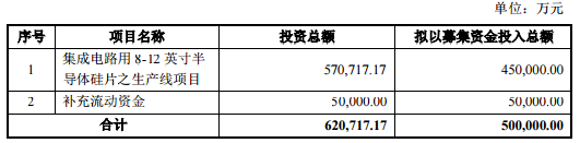 “集成电路用8-12英寸半导体硅片项目”由中环股份子公司中环领先负责实施。项目建设期为3年,建成后将达到每月75万片8英寸抛光片和15万片12英寸抛光片的产能。中环股份在项目中的投资总额为57.07亿元,其中设备购置费、调试费和安装工程费50.18亿元,拟将此次非公开发行募集资金中的45亿元用于项目建设。