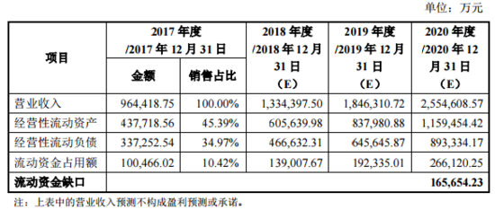 2015-2017 年中环股份营业收入实现了 38.36%的复合增长率,按此增长并以 2017 年为基期计算,未来三年的营业收入预计以及新增流动资金需求的测算过程如下: