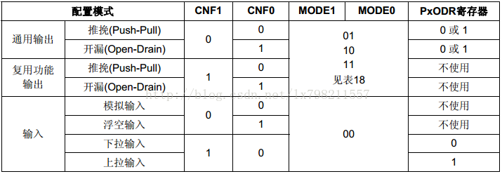 根据模式配置图,即要设置GOIPx—ODR寄存器的3/4位为1,才能保证为上拉输入。
