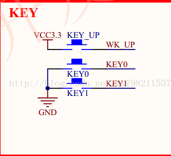 硬件图可知,在设计中,应该在内部设置为上拉下拉输入,即KEY0,KEY1为上拉(输入高电平,本身为低电平有效),KEY_UP为下拉(输入低电平,本身为高电平有效)。