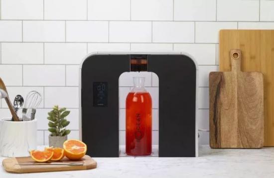 一套号称是世界首款个性化、全功能的“智能水生态系统”,可以把水变成饮料的净水机rOcean One就能帮你实现这个白日梦。只需将其与家中自来水管连接,想喝饮料时把杯子在它的出水口下,手指轻点一杯纯果汁饮料就做好了。喝的时候你还会发现,杯子里的果汁竟然是碳酸饮料。这是因为这款净水机具有碳酸化功能,它可以用内置气嘴,在水中直接注入气泡,十分奇妙。如果还想喝得有滋有味,就在机器里放入喜欢的调味包,并在触摸屏上选择适当的浓度就好。更加厉害的是,它的净化功能非常强大,能够去除水中的铅、砷、石棉、孢囊、氯、汞和其他79种污染物,过滤效果高出其他品牌15倍,滤芯寿命也要长10倍。反言之,就算不喝饮料直接干了自来水也是没问题的~