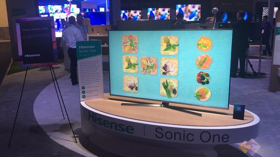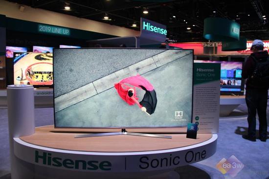 2019年CES展的海信展台,一台65吋的Sonic-one液晶电视因为超乎想象的薄和超凡的设计吸引了参展者的注目。