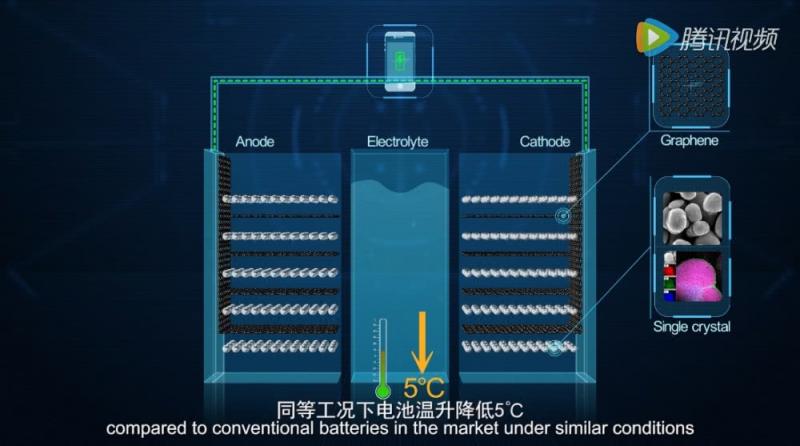 让电池充电更快同时也不容易过热,这是石墨烯的材料的作用。华为官方之前曾表示,加入这个材料后,可以将锂离子电池上限使用温度提高10℃,寿命相比普通的锂电池提高2倍,而当时在第56届日本电池大会上,华为展示的方案是就是,这个石墨烯技术锂电池3000mAh容量,5分钟高速快充,充入入50%的电量,而整个过程安全不热。