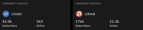 另外,原文给出的另一个理由很有意思,那就是AMD的粉丝数量比英特尔更多,他们的证据是AMD、英特尔在Reddit上的订阅数,英特尔话题只有42K订阅者,AMD话题有176K订阅者。
