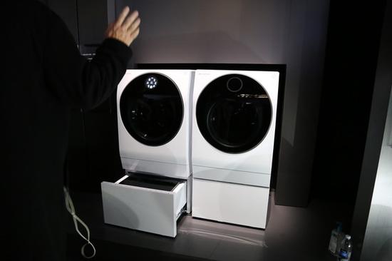 本届CES2019,LG带来了TwinWash洗衣机和烘干机的最新版本,依旧是上下结构,下层的超小型洗衣桶(2KG)负责处理小件衣物,上层的9KG滚筒洗衣机则可以用来洗涤大件衣物。此次颇有亮点的是配备了LG TwinWash样式的干衣机产品,这款产品配备了双逆变器热泵,可以加速和延迟循环速度,在低温下有效干燥,防止皱折和衣物收缩,热泵式干衣技术是目前最好的干衣机技术,这款产品在技术上依旧保持了较高水准。