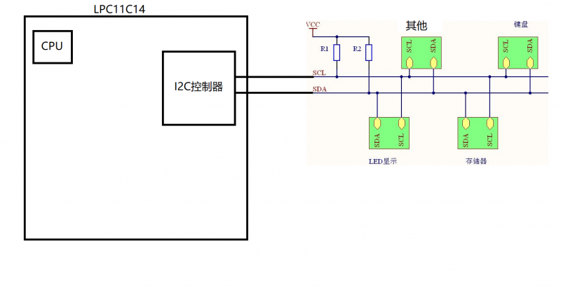 一个主设备可以连接多个从设备,那么究竟什么是主设备,从设备?IIC总线结构如下: