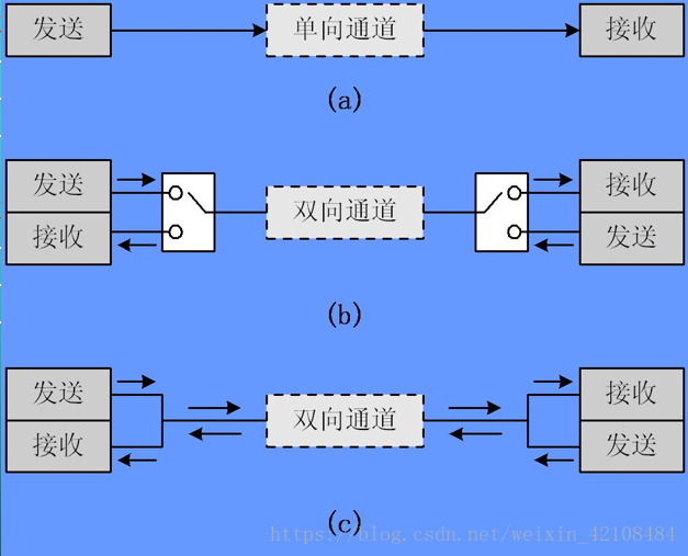 根据传输方式又分为单工、半双工和全双工三种,如图所示: