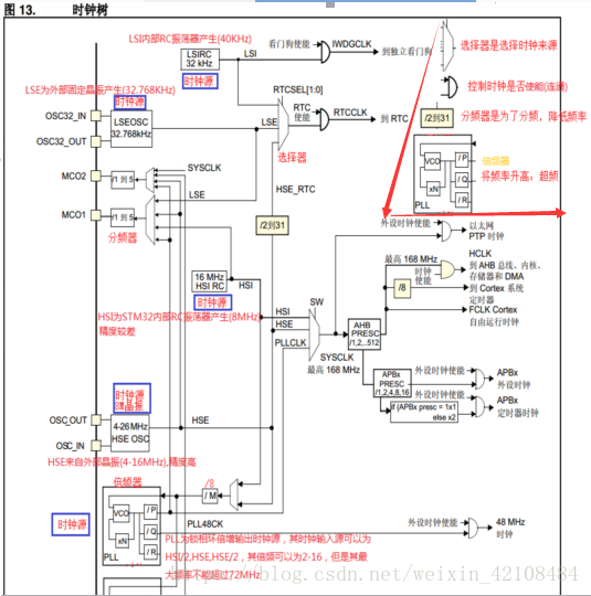 第一个输出PLLP用于生成高速的系统时钟(最高168MHz)
