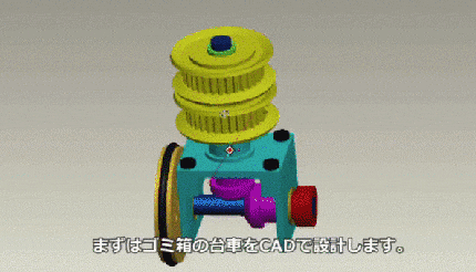然后,小哥用软件设计了垃圾桶的底盘和车轮部分~