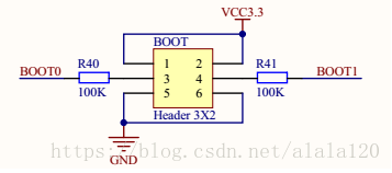 当烧写程序时,我们希望BOOT0=1,BOOT1=0。当烧写完成后我们希望BOOT0=0,BOOT1=0(这个模式BOOT1可以是0可以是1,这里我们让BOOT1拉低,即整个过程BOOT1都为L接地,简化电路设计)。