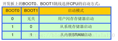 M3核的器件有3种启动方式,M4的有4种。通过BOOT0,BOOT1的电平进行选择。