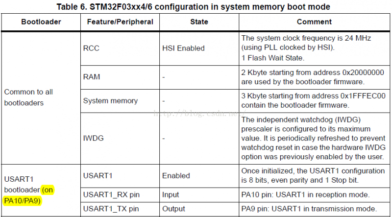 那么本文中对于STM32F030系列微控制器的ISP下载为何会失败呢?其实说到底还是没有认真的阅读ST官方的用户指南。首先我们看一看在启用串口ISP下载程序是需要具备哪些条件。