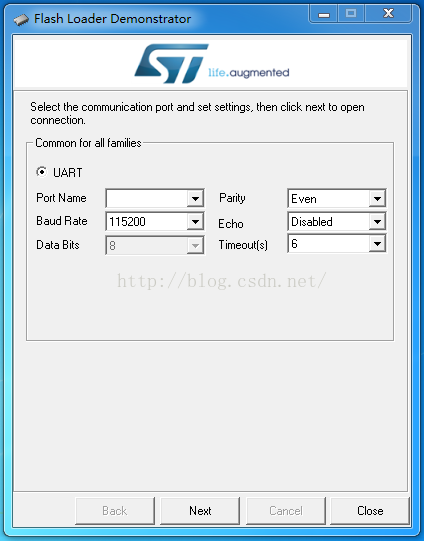 最后就是使用FlashLoader软件下载程序了。