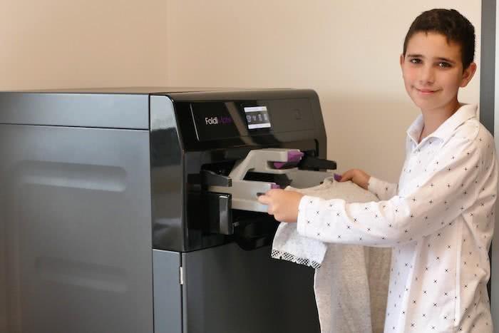 FoldiMate 的体积并不大,经过降噪处理可以放在家庭中的任何空间,因为置入了符合人体工学设计和剪裁的数据,它可以折叠任何类型从5岁到成人尺寸的衣物。