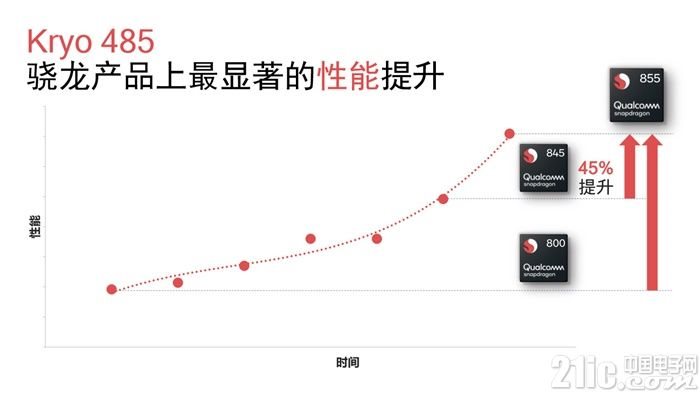 性能方面,相比骁龙845来说,骁龙855的CPU性能最高提升45%,GPU性能则最高提升20%。
