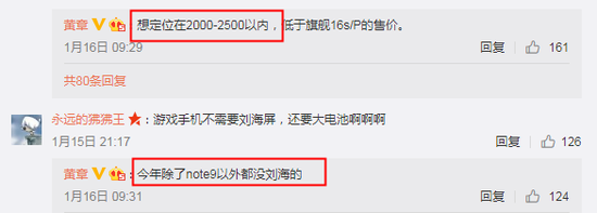 黄章在投票微博下和网友积极互动,同时也曝光了许多重要的新机情报。