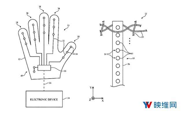 苹果同时提到,“在一个实施例中,所述物品可以是力感知手套,并用于控制利用力感知器测量数据的电子设备”。这意味着力感知手套可用于手势控制输入,并作用于VR/AR/MR设备。