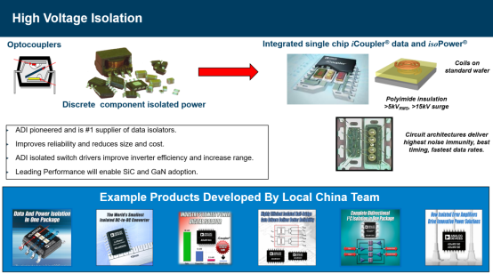 以ADI高压电源IC芯片为例,面对恶劣的工作环境,ADI通过取代光学器件与分立元器件来减小尺寸、减轻重量,以降低系统成本,同时还建造了专门的制造厂,在标准硅晶圆上制作高性能的金线圈,贴装电子元器件时针对系统进行优化,最大限度地提高系统效率。据Vincent透露,这是利用ADI高压隔离技术实现的,其特性非常适合于下一代碳化硅和氮化镓的驱动,而该技术中很大一部分工程设计都来自于ADI中国研发团队。实际上,以碳化硅为代表的新一代高频、高效电力电子将会被普遍使用,这也会推动高速电机向小型、高效、低成本的方向发展。