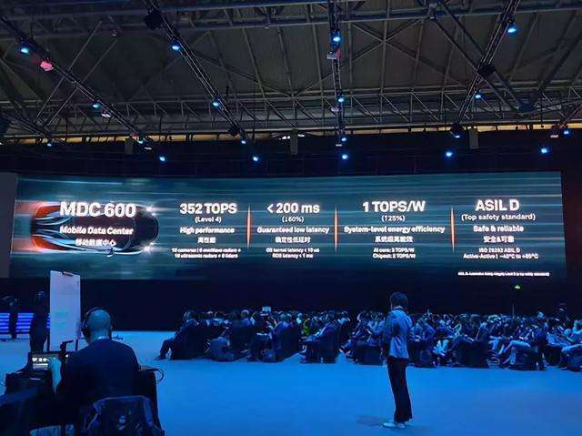 在发布会现场,华为称,MDC600的算力高达352TOPS(TOPS:万亿次/秒),整体系统的功耗算力比是1 TOPS/W,相对而言,自动驾驶计算平台霸主英伟达最新一代产品Drive PX Pegasus的算力为320TOPS,功耗算力比为1TOPS/1.56W。