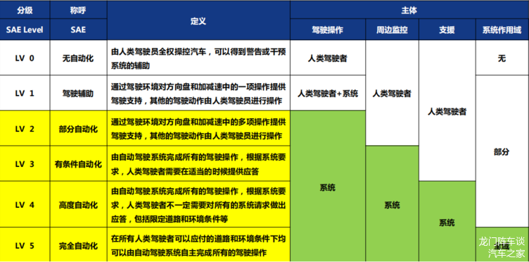 L2级:同样是在驾驶支援的范畴。如果汽车除了具备上面L1级描述中的自适应巡航外,同时还具备车道保持(LKA)功能,或者自动变道功能,那则属于L2级自动驾驶。也就是说,系统除了能控制加减速,同时还能对方向盘进行控制,多项控制就是L2。但是人仍然是驾驶环境的观察者。