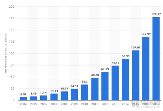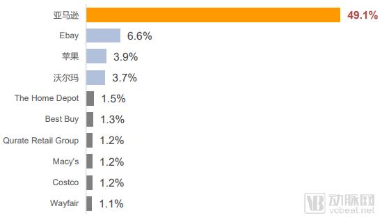 2017年亚马逊销量在美国网络零售额比例为34%,2027年比重将达到53%,这同时也意味着,亚马逊销售在美国整体零售额中的占比2017年为4%,2027将达到12%。亚马逊2017年营收为1779亿美元,在财富500强美国公司中排名第26。