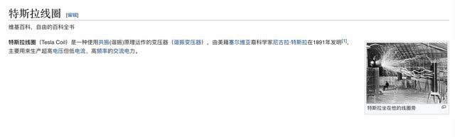 特斯拉线圈词条解释(图源:wikipedia.org)
