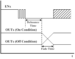 EN瞬时接触按钮输入:输入消抖和锁存、优先级高于PWM输入、伽玛校正淡入/淡出算法;