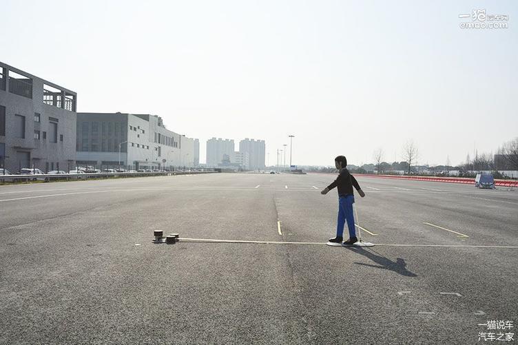 说了这么多,最重要的还是得看实际表现,首先我们来带大伙体验一下假人测试项目。在测试中,假人会以静止、横穿马路以及从死角处突然出现的三种方式进行模拟测试。