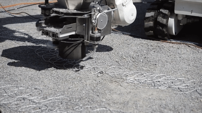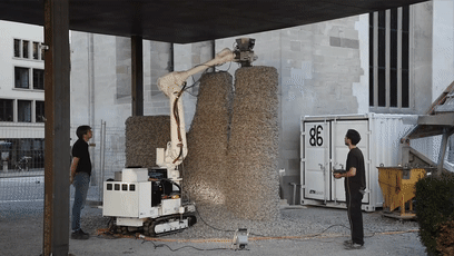 苏黎世联邦理工学院的研究人员曾在温特图尔市的一个展览中使用建筑机器人3D打印了一个临时展馆。机器人使用30吨松散的石头和120公里的绳索建造了一个岩石印刷馆。