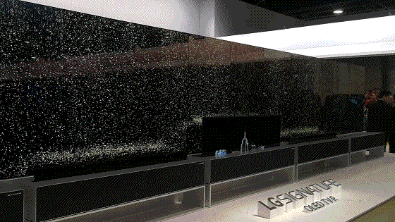 可以利用柔性可卷曲特征实现升降的OLED电视,可以吊装在一个SoundBar下面看起来像条瀑布的OLED电视,可以在面板中植入五个扬声单元深度模拟音画合一效果的Crystal Sound OLED技术,以及把200多块柔性OLED面板拼接在一起让所有观众“Wow……”的巨大展项。对OLED来说,2019年必将是一次奇幻之旅。
