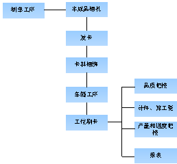 采集系统先通过RFID卡捆绑上生产车间的半成品和车间工人的识别码,工人每做完一道工序就读取RFID卡上的信息录入系统,能够对每一批货物的进度、流向进行实时的监控。