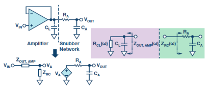 图6.缓冲和缓冲器等效电路(左)与放大器和缓冲器网络的等效阻抗(右)