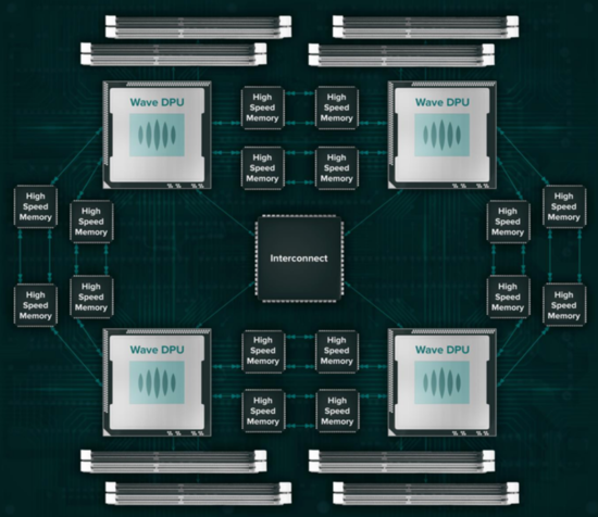 图1:Wave是从上面显示的4节点“DPU”构建的系统。Wave Computing