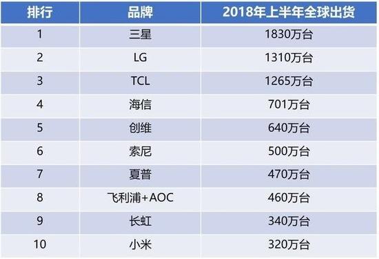 不过在全球市场上看,今年上半年小 米电视的出货量与其他国产品牌差距仍然很大,国产品牌中TCL、海信、创维、长虹的出货量均在小 米之前。算上所有品牌,小 米仅仅能排到第十名。而且小 米电视还有个问题就是,所有的电视都是低端产品,而且至今也没有向高端产品探一探的想法。