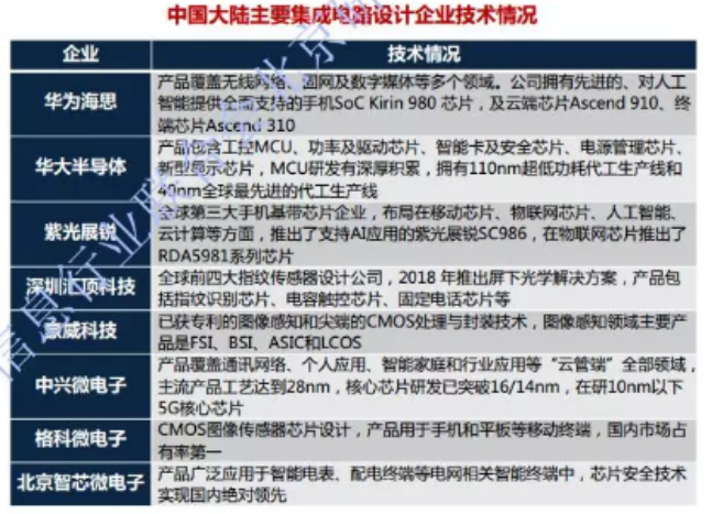 以下为本次报告提及的国内IC设计企业中的“代表”。