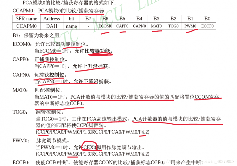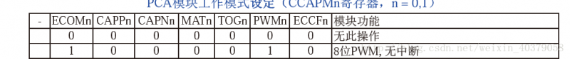 CCAPM0 = 0X42; //设置PCA的工作模式为8位PWM并且不允许任何中断