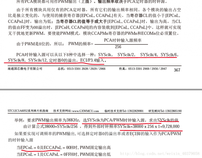 当将PCA模块配置成上述模式之后,再经过一些配置后,会出现在相应的引脚发出相应的PWM波形