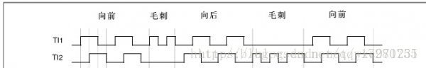前文提到编码器通过发送正交脉冲信号表示角度信息,如图为一个示例。(其中TI1和TI2分别对应编码器输出A、B项)