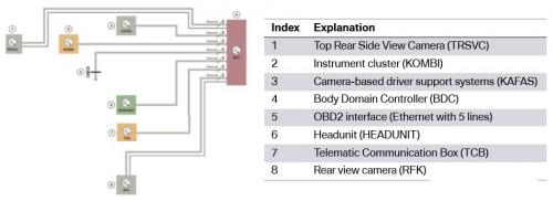 The following ECU are connected to the vehicle electrical system via two-wire OABR Ethernet