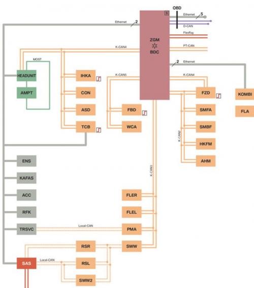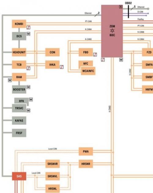 The following control units are, aside from a further bus system, connected to the vehicle electrical system via OABR Ethernet: