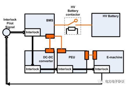 在电控系统内部,也应监控自身的所有高压端子状态(主要是电池正负线和电机三相线),如果发现互锁失败,应立即将电控系统进入安全状态。