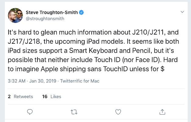2019年01月30日 | 传文新 iPad 将支持 Apple Pencil 和智能键盘