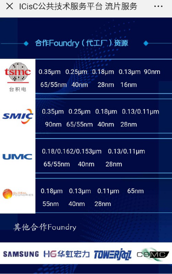 IcisC提供的流片服务合作代工厂包括台积电、SMIC、UMC、格芯、华虹与三星等国内外厂商。
